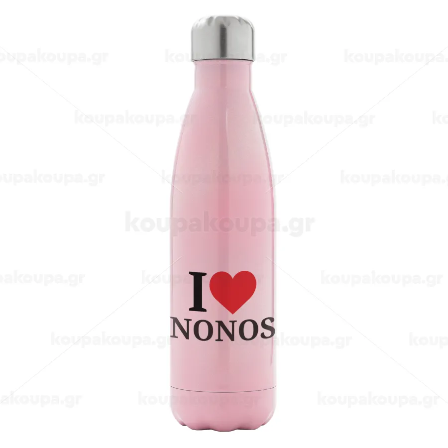 I Love ΝΟΝΟΣ, Μεταλλικό παγούρι θερμός Ροζ Ιριδίζον (Stainless steel), διπλού τοιχώματος, 500ml