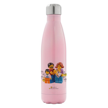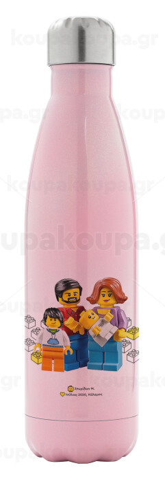 Τύπου Lego family, Μεταλλικό παγούρι θερμός Ροζ Ιριδίζον (Stainless steel), διπλού τοιχώματος, 500ml