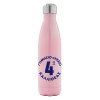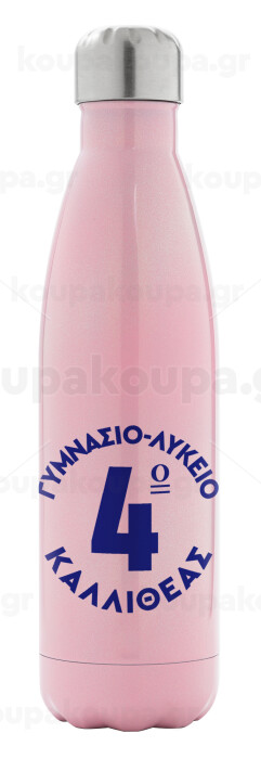 Έμβλημα Σχολικό μπλε κλασικό, Μεταλλικό παγούρι θερμός Ροζ Ιριδίζον (Stainless steel), διπλού τοιχώματος, 500ml