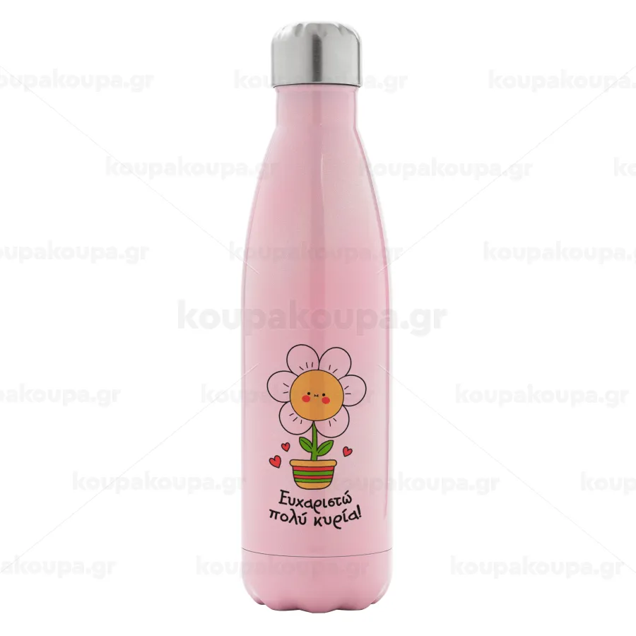 Ευχαριστώ πολύ κυρία!!!, Μεταλλικό παγούρι θερμός Ροζ Ιριδίζον (Stainless steel), διπλού τοιχώματος, 500ml