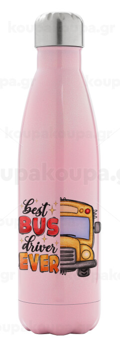 Best bus driver ever!, Μεταλλικό παγούρι θερμός Ροζ Ιριδίζον (Stainless steel), διπλού τοιχώματος, 500ml