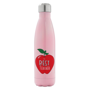 Best teacher, Μεταλλικό παγούρι θερμός Ροζ Ιριδίζον (Stainless steel), διπλού τοιχώματος, 500ml