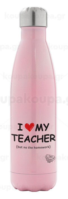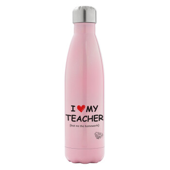 i love my teacher but no the homework, Μεταλλικό παγούρι θερμός Ροζ Ιριδίζον (Stainless steel), διπλού τοιχώματος, 500ml