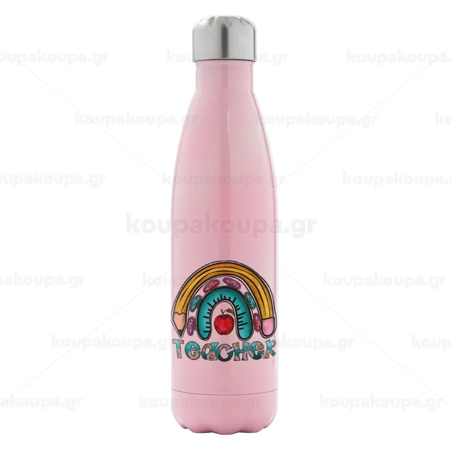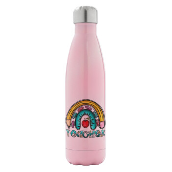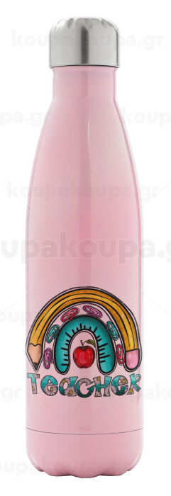 Teacher, Μεταλλικό παγούρι θερμός Ροζ Ιριδίζον (Stainless steel), διπλού τοιχώματος, 500ml