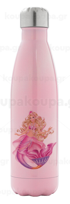 Barbie γοργόνα , Μεταλλικό παγούρι θερμός Ροζ Ιριδίζον (Stainless steel), διπλού τοιχώματος, 500ml