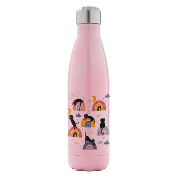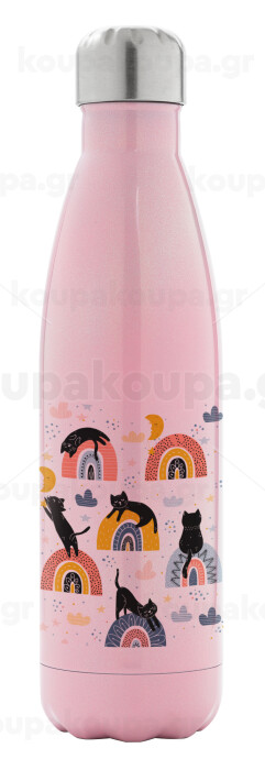 Γατούλες, Μεταλλικό παγούρι θερμός Ροζ Ιριδίζον (Stainless steel), διπλού τοιχώματος, 500ml