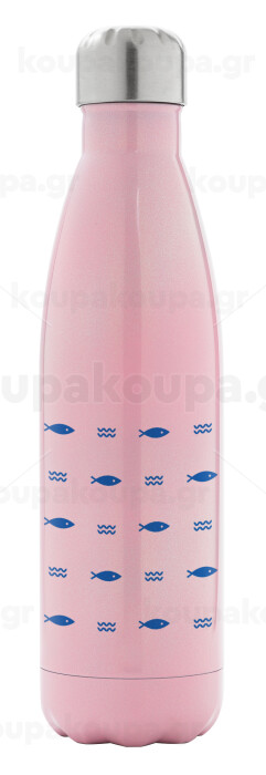 Ψαράκια, Μεταλλικό παγούρι θερμός Ροζ Ιριδίζον (Stainless steel), διπλού τοιχώματος, 500ml