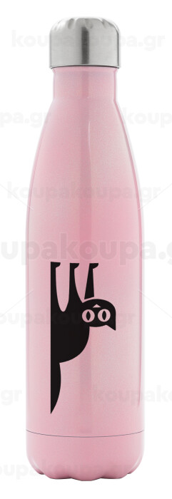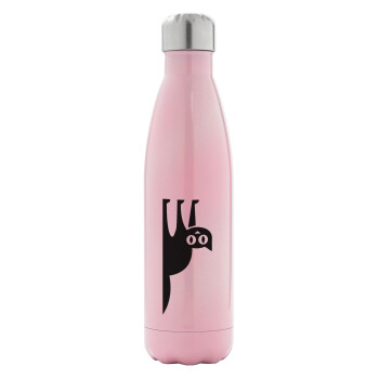 Cat upside down, Μεταλλικό παγούρι θερμός Ροζ Ιριδίζον (Stainless steel), διπλού τοιχώματος, 500ml