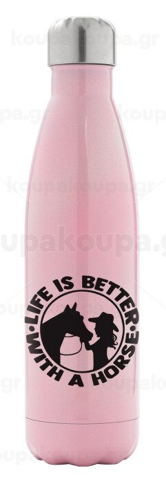 Life is Better with a Horse, Μεταλλικό παγούρι θερμός Ροζ Ιριδίζον (Stainless steel), διπλού τοιχώματος, 500ml