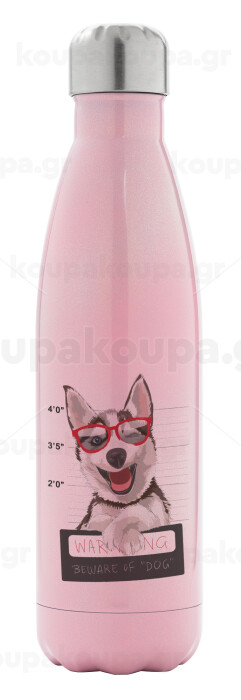 Warning, beware of Dog, Μεταλλικό παγούρι θερμός Ροζ Ιριδίζον (Stainless steel), διπλού τοιχώματος, 500ml
