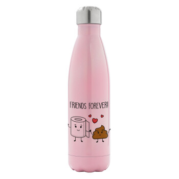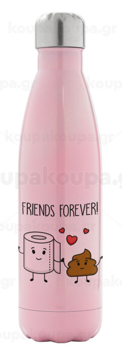 Friends forever, Μεταλλικό παγούρι θερμός Ροζ Ιριδίζον (Stainless steel), διπλού τοιχώματος, 500ml