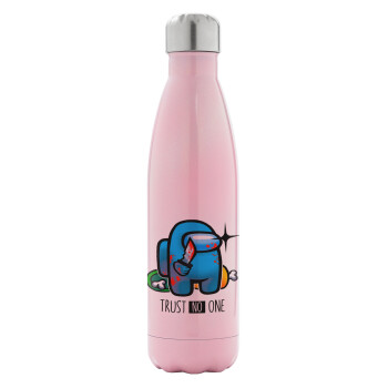 Among Trust no one, Μεταλλικό παγούρι θερμός Ροζ Ιριδίζον (Stainless steel), διπλού τοιχώματος, 500ml