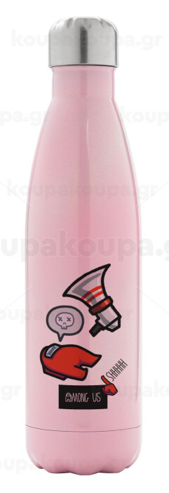 Among US Shhhh!!!, Μεταλλικό παγούρι θερμός Ροζ Ιριδίζον (Stainless steel), διπλού τοιχώματος, 500ml