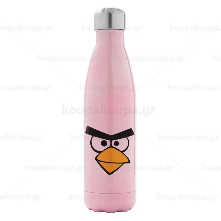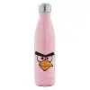 Angry birds eyes, Μεταλλικό παγούρι θερμός Ροζ Ιριδίζον (Stainless steel), διπλού τοιχώματος, 500ml
