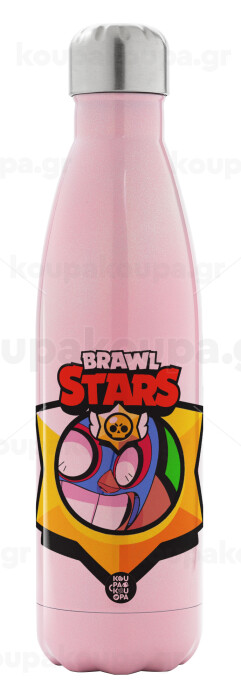 Brawl Stars El primo, Μεταλλικό παγούρι θερμός Ροζ Ιριδίζον (Stainless steel), διπλού τοιχώματος, 500ml
