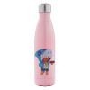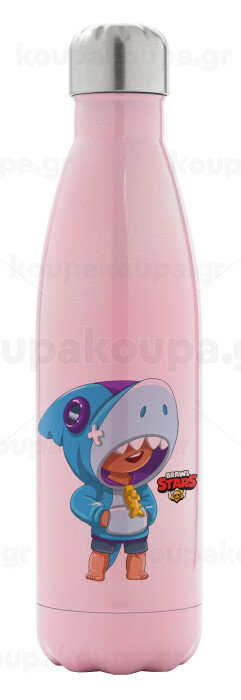 Brawl Stars Leon Shark, Μεταλλικό παγούρι θερμός Ροζ Ιριδίζον (Stainless steel), διπλού τοιχώματος, 500ml