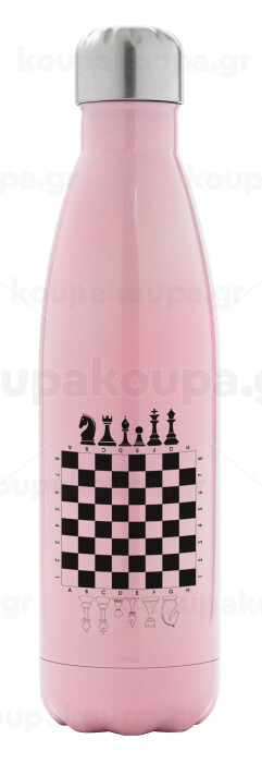 Σκάκι, Μεταλλικό παγούρι θερμός Ροζ Ιριδίζον (Stainless steel), διπλού τοιχώματος, 500ml
