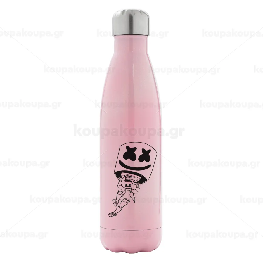 Fortnite Marshmello, Μεταλλικό παγούρι θερμός Ροζ Ιριδίζον (Stainless steel), διπλού τοιχώματος, 500ml