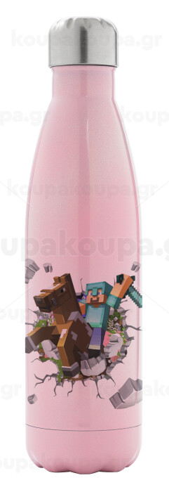 Minecraft brick, Μεταλλικό παγούρι θερμός Ροζ Ιριδίζον (Stainless steel), διπλού τοιχώματος, 500ml