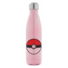 Pokemon ball, Μεταλλικό παγούρι θερμός Ροζ Ιριδίζον (Stainless steel), διπλού τοιχώματος, 500ml