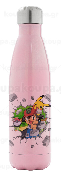 Pokemon brick, Μεταλλικό παγούρι θερμός Ροζ Ιριδίζον (Stainless steel), διπλού τοιχώματος, 500ml