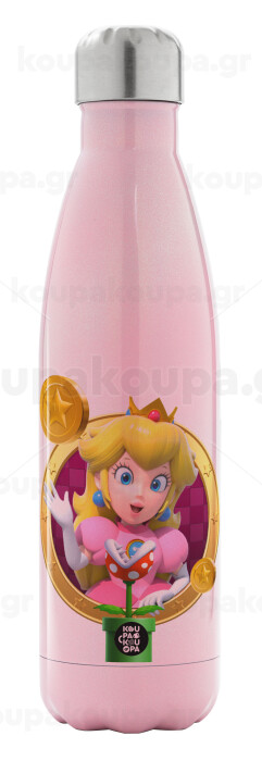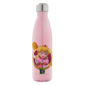 Princess Peach Toadstool, Μεταλλικό παγούρι θερμός Ροζ Ιριδίζον (Stainless steel), διπλού τοιχώματος, 500ml