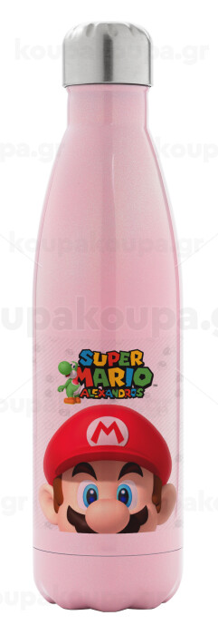 Super mario head, Μεταλλικό παγούρι θερμός Ροζ Ιριδίζον (Stainless steel), διπλού τοιχώματος, 500ml