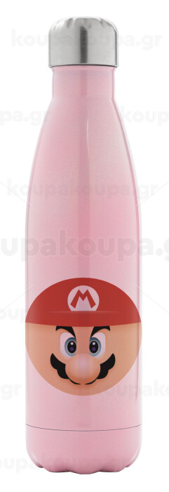 Super mario flat, Μεταλλικό παγούρι θερμός Ροζ Ιριδίζον (Stainless steel), διπλού τοιχώματος, 500ml