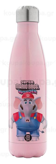 Super mario wonder, Μεταλλικό παγούρι θερμός Ροζ Ιριδίζον (Stainless steel), διπλού τοιχώματος, 500ml