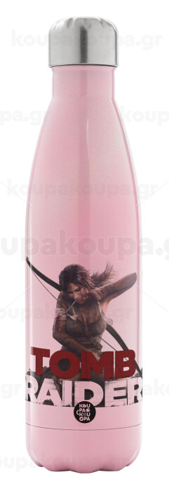 Tomb raider, Μεταλλικό παγούρι θερμός Ροζ Ιριδίζον (Stainless steel), διπλού τοιχώματος, 500ml