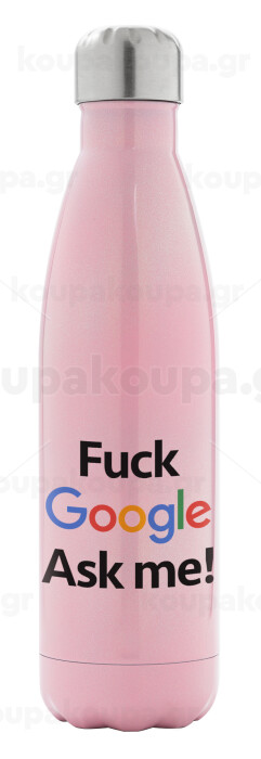 Fuck Google, Ask me!, Μεταλλικό παγούρι θερμός Ροζ Ιριδίζον (Stainless steel), διπλού τοιχώματος, 500ml