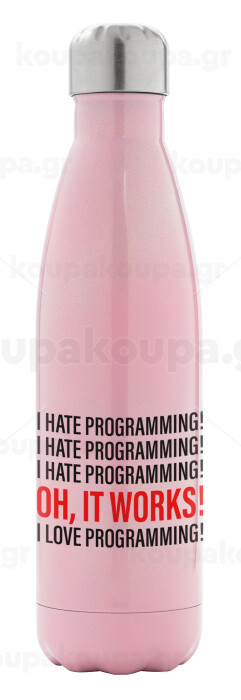 I hate programming!!!, Μεταλλικό παγούρι θερμός Ροζ Ιριδίζον (Stainless steel), διπλού τοιχώματος, 500ml