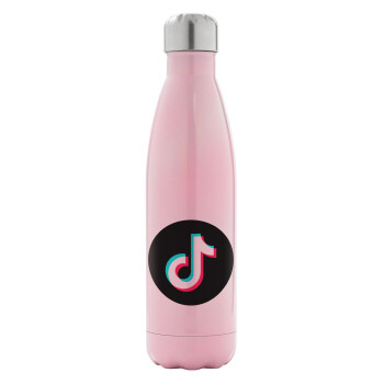 TikTok, Μεταλλικό παγούρι θερμός Ροζ Ιριδίζον (Stainless steel), διπλού τοιχώματος, 500ml