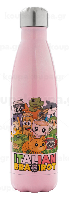 Italian Brainrot friends, Μεταλλικό παγούρι θερμός Ροζ Ιριδίζον (Stainless steel), διπλού τοιχώματος, 500ml
