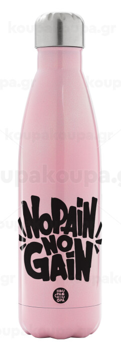 No pain no gain, Μεταλλικό παγούρι θερμός Ροζ Ιριδίζον (Stainless steel), διπλού τοιχώματος, 500ml