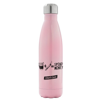 Spend Money, Μεταλλικό παγούρι θερμός Ροζ Ιριδίζον (Stainless steel), διπλού τοιχώματος, 500ml