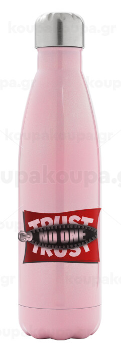 Trust no one... (zipper), Μεταλλικό παγούρι θερμός Ροζ Ιριδίζον (Stainless steel), διπλού τοιχώματος, 500ml