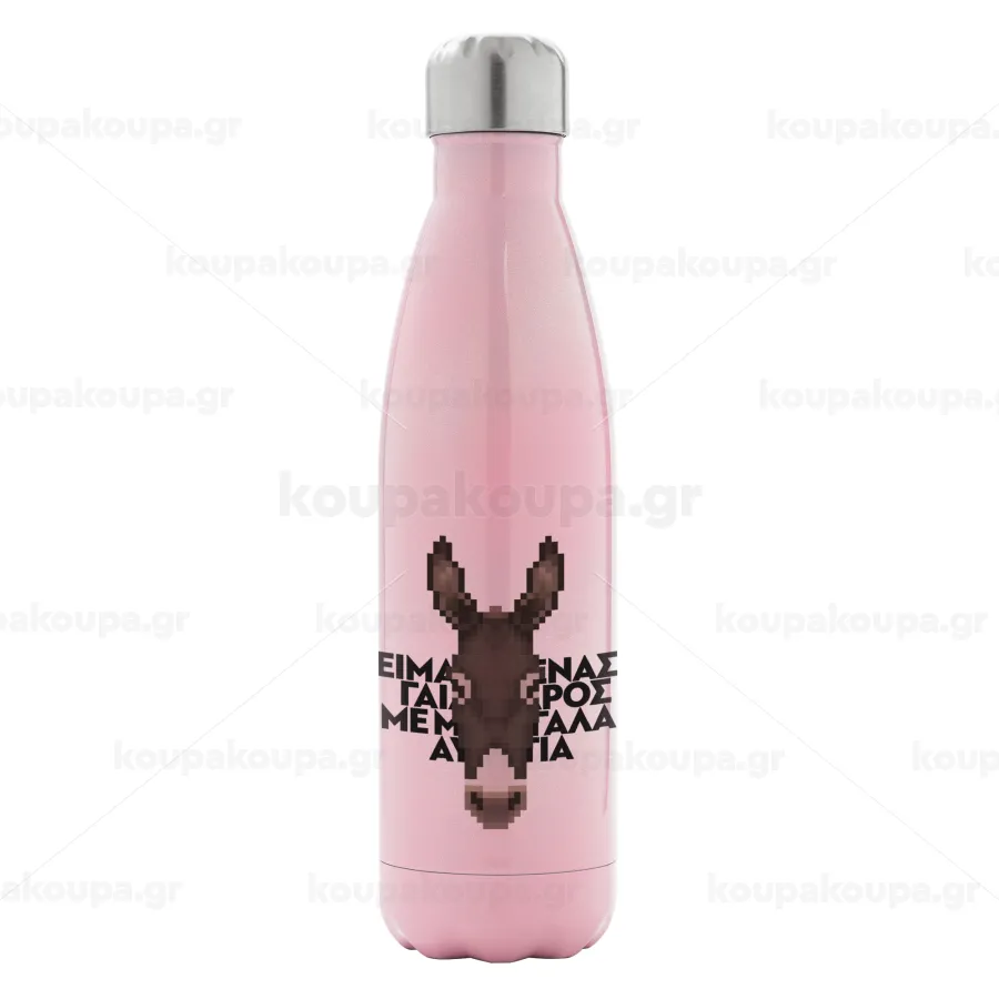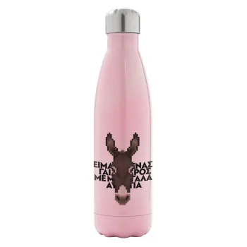 Είμαι ένας γάιδαρος με μεγάλα αυτιά., Μεταλλικό παγούρι θερμός Ροζ Ιριδίζον (Stainless steel), διπλού τοιχώματος, 500ml