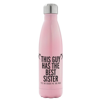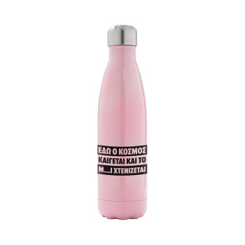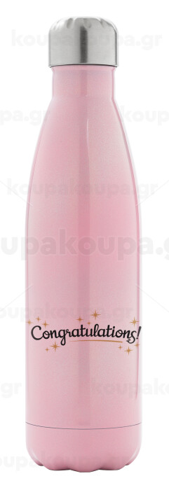 Congratulations, Μεταλλικό παγούρι θερμός Ροζ Ιριδίζον (Stainless steel), διπλού τοιχώματος, 500ml