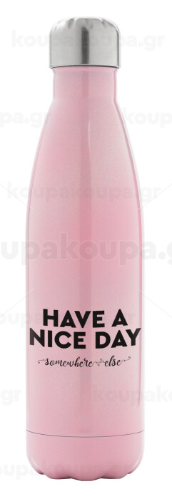 Have a nice day somewhere else, Μεταλλικό παγούρι θερμός Ροζ Ιριδίζον (Stainless steel), διπλού τοιχώματος, 500ml