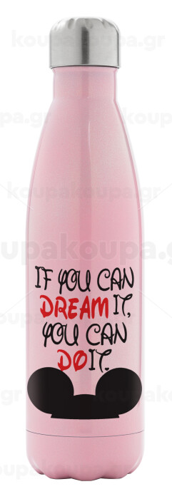 If you can dream it, you can do it, Μεταλλικό παγούρι θερμός Ροζ Ιριδίζον (Stainless steel), διπλού τοιχώματος, 500ml