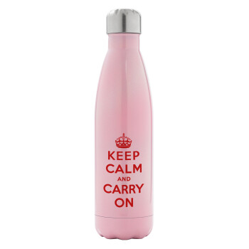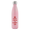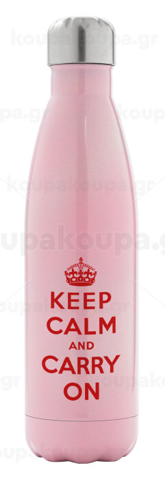 KEEP CALM  and carry on, Μεταλλικό παγούρι θερμός Ροζ Ιριδίζον (Stainless steel), διπλού τοιχώματος, 500ml