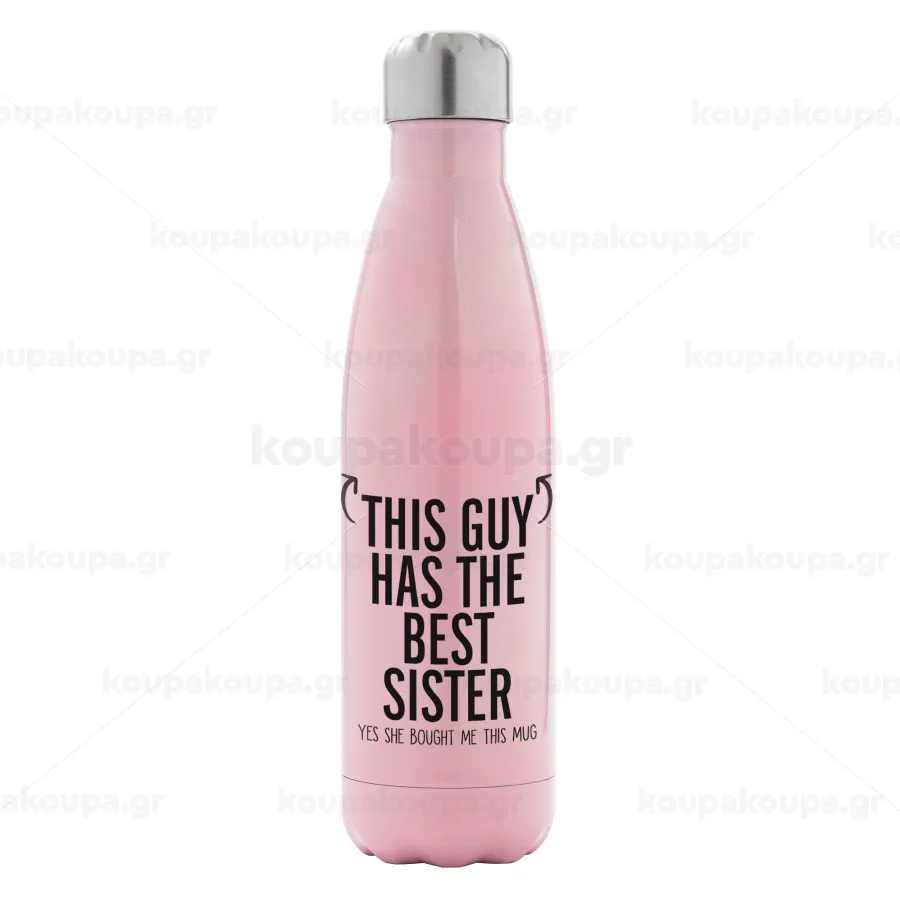 This guy has the best Sister, Μεταλλικό παγούρι θερμός Ροζ Ιριδίζον (Stainless steel), διπλού τοιχώματος, 500ml