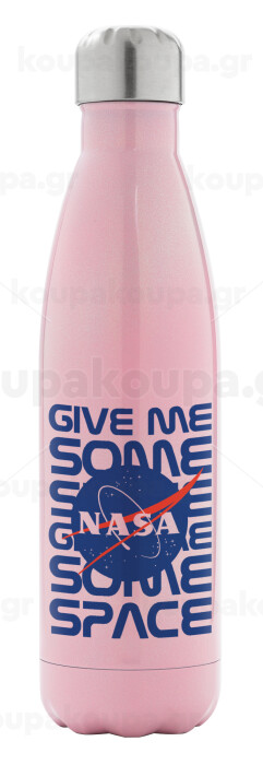 NASA give me some space, Μεταλλικό παγούρι θερμός Ροζ Ιριδίζον (Stainless steel), διπλού τοιχώματος, 500ml