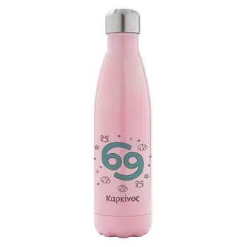 Ζώδια Καρκίνος, Μεταλλικό παγούρι θερμός Ροζ Ιριδίζον (Stainless steel), διπλού τοιχώματος, 500ml