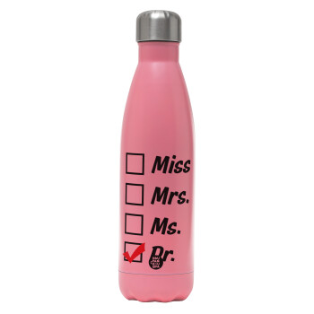 Miss, Mrs, Ms, DR, Μεταλλικό παγούρι θερμός Ροζ Ματ (Stainless steel), διπλού τοιχώματος, 500ml