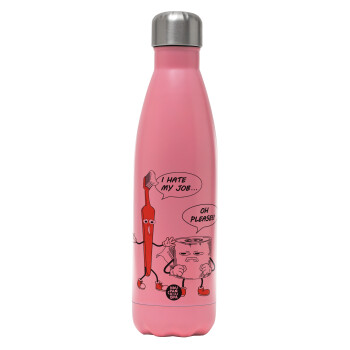 I hate my job, Μεταλλικό παγούρι θερμός Ροζ Ματ (Stainless steel), διπλού τοιχώματος, 500ml