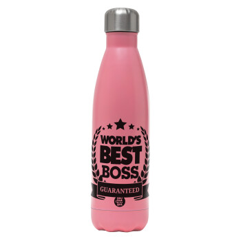 World's best boss stars, Μεταλλικό παγούρι θερμός Ροζ Ματ (Stainless steel), διπλού τοιχώματος, 500ml