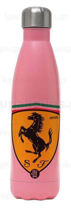 Ferrari, Μεταλλικό παγούρι θερμός Ροζ Ματ (Stainless steel), διπλού τοιχώματος, 500ml