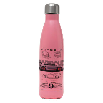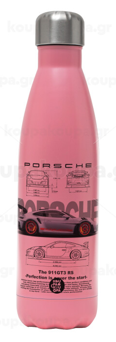 Porsche, Μεταλλικό παγούρι θερμός Ροζ Ματ (Stainless steel), διπλού τοιχώματος, 500ml